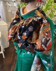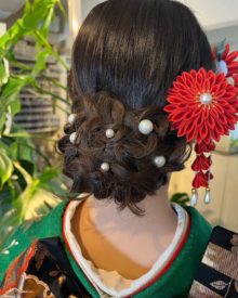グリーンのお着物に シンプルキュートなヘアスタイルで作らせていただきました😊