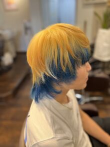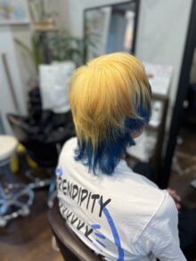ドラゴンクエストの勇者 を イメージして 前頭ブリーチに インナーカラーはブルー とっても楽しいお客様で いつも私が楽しませて頂いてます 勇者に見えてますか