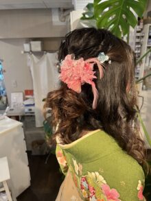 シックな 落ち着きのあるお着物でしたので、ちょっと華やかなヘアで 合わせました